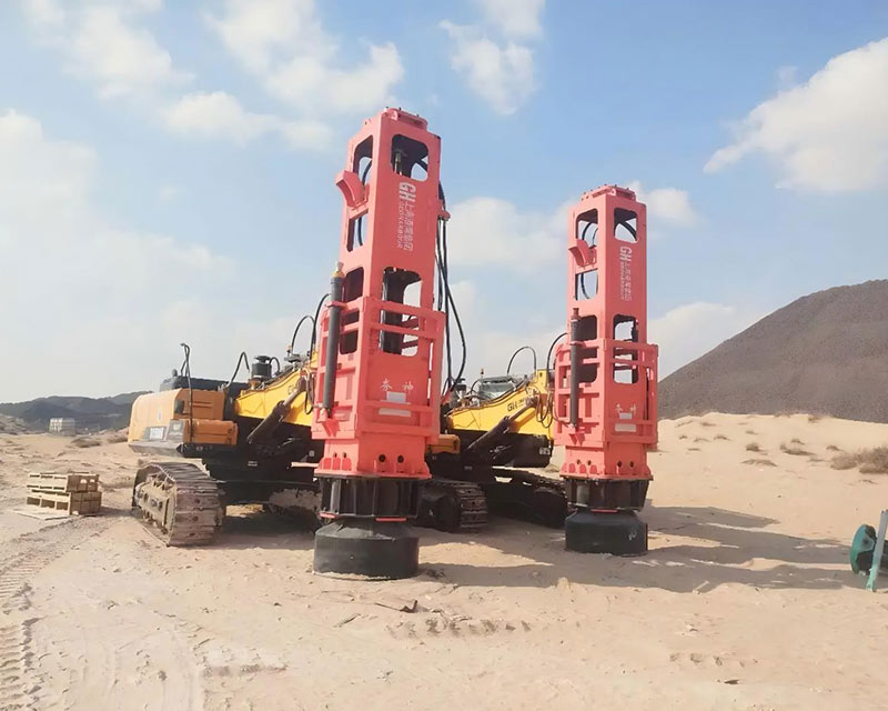 2024年底,上海港灣集團采購的6臺HC150挖掘機液壓夯分別在沙特阿拉伯利雅得 阿聯(lián)酋阿布扎比等沙漠地址環(huán)境下的地面改進工程中使用。