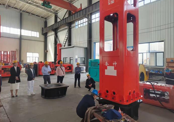 國外客戶參觀工廠并探討液壓夯HC150 HC180 并在場地觀察實際夯實效果